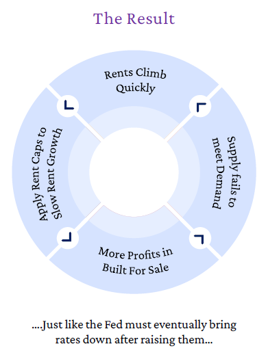 The narrative explained in the piece below today hasn’t changed much in today’s environment. Bad policies follow bad policy; as a result, rents continue to soar. Given the option to embrace a compromising policy, NY officials takes options that, on some level, may sound like they’re in the name of preserving affordability, but what they do is heighten scarcity in the system (by discouraging build-for-rent properties) and contribute to soaring rents, which then incentivize further government legislation to abate.