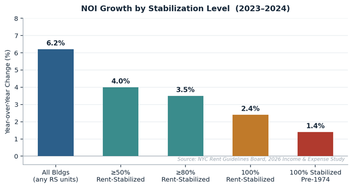 On March 26, the RGB released its annual Income and Expense Study, based on data from nearly 17,800 buildings covering more than 805,000 apartments during 2024. The headline number figures notably showed a 6.2% increase in net operating incomes for all buildings with at least one stabilized unit. This quickly became a political flashpoint. Tenant advocates cited it as justification for a freeze. Landlord groups argued the figured obscured the real, on-the-ground narratives that were playing out. Both are partially right.