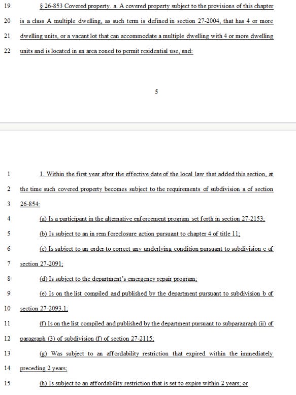 The main way to avoid COPA is to keep buildings running smoothly and avoid disrepair. Easy enough, in theory, but the devil will lie in the implementation of the policy. According to the latest bill, the following buildings are subject to COPA, known as “covered properties,”: