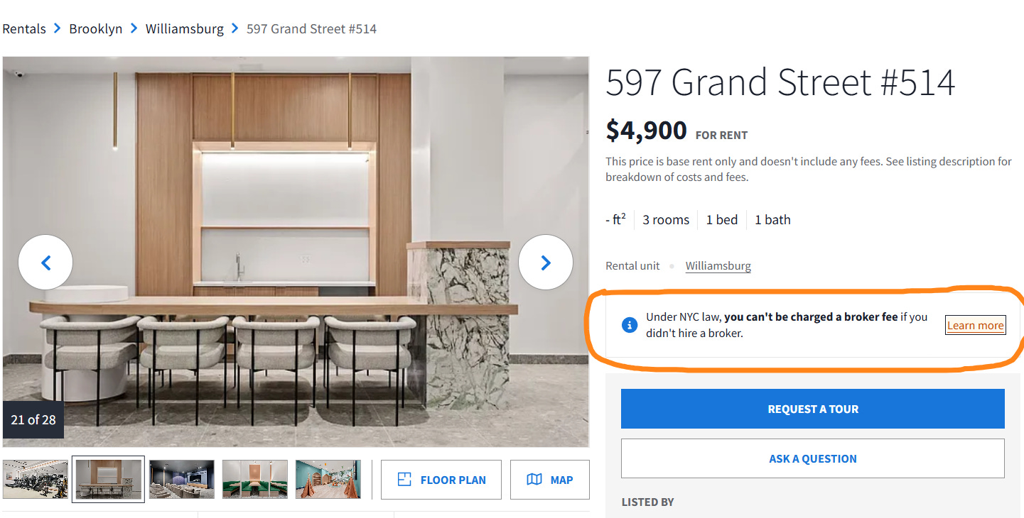 The Fairness in Apartment Rental Expenses (FARE) Act went into effect on Wednesday. To reflect this change, StreetEasy, the go-to portal for finding apartments in NYC, has updated its listing pages to include language regarding broker fees. StreetEasy has also removed the option for rental agents to list apartments as no fee.